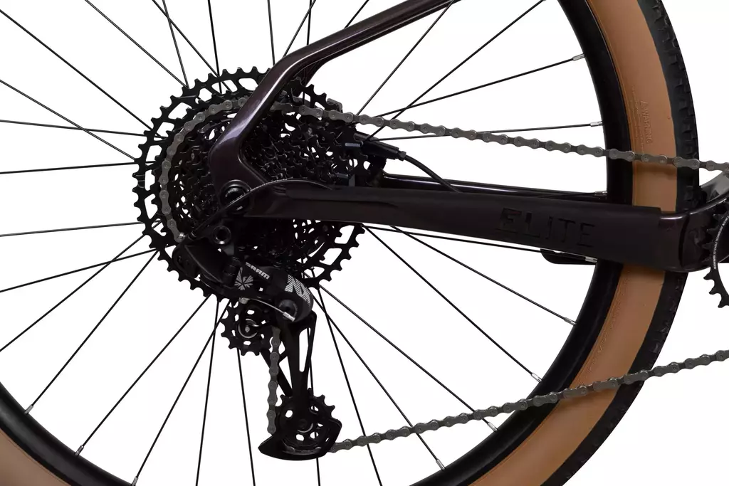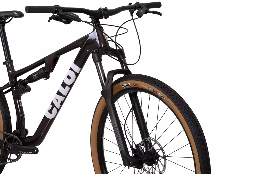 A Elite Carbon FS é equipada com RockShox Judy Silver TK, a ar, com 120 mm de curso, shock RockShox Deluxe Select+, selim Royal Ciclo, grupo SRAM NX, com pedivela SRAM Trylo 6k, freios SRAM Level e pneus Maxxis Ikon 29×2.20.