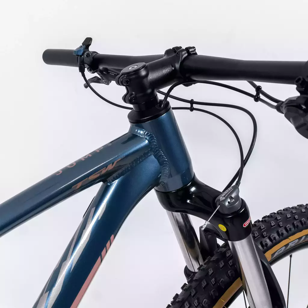 A TSW Jump é a combinação do clássico com o moderno, sua proposta é fazer suas pedaladas saltarem para patamares ainda mais altos. Equipada com aro 29”, suspensão SR Suntour XCM 32 de 100mm de curso e kit Shimano CUES de 10 velocidades, essa bike oferece robustez e trocas de marchas suaves. Seu quadro com angulações agressivas inspira confiança e controle, enquanto detalhes como cabeamento interno, aro de alumínio TSW T10.000, pneus Mount Bona 2.35 da Arisun e freios Shimano MT200 fazem a diferença, garantindo uma experiência única e segura nas trilhas off-road.