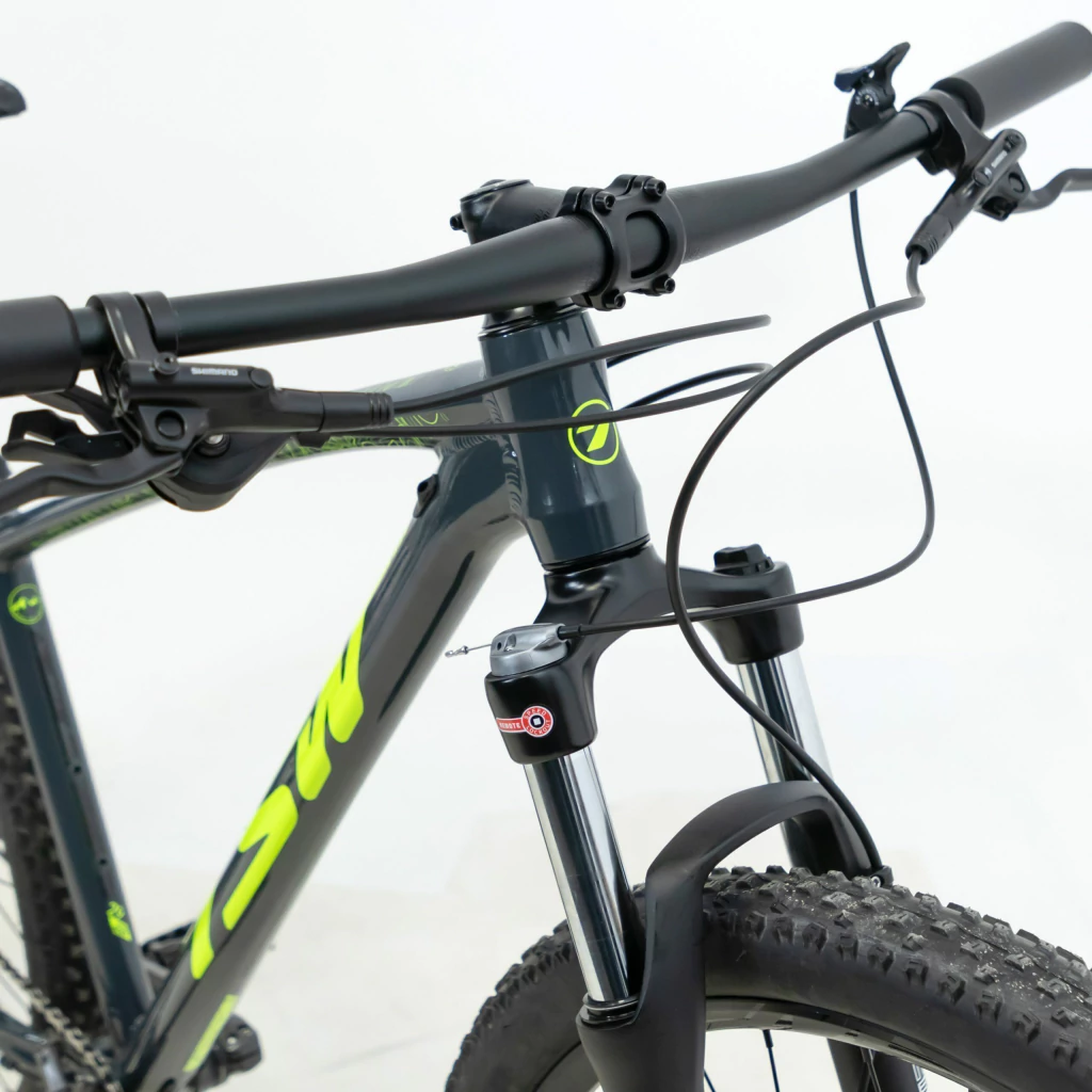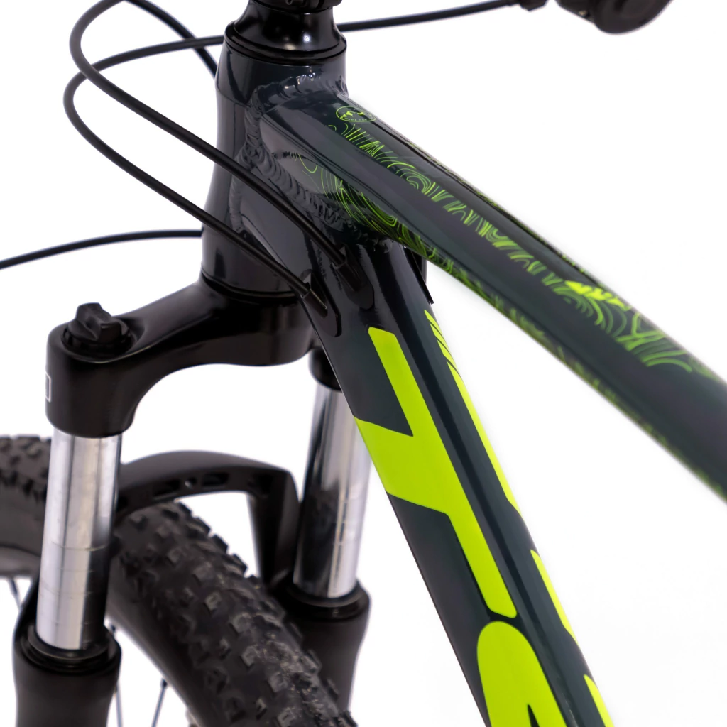 Ela vem com aro 29, Freio Hidráulico, Movimento de Direção Mega Over e Movimento Central Shimano MT500.