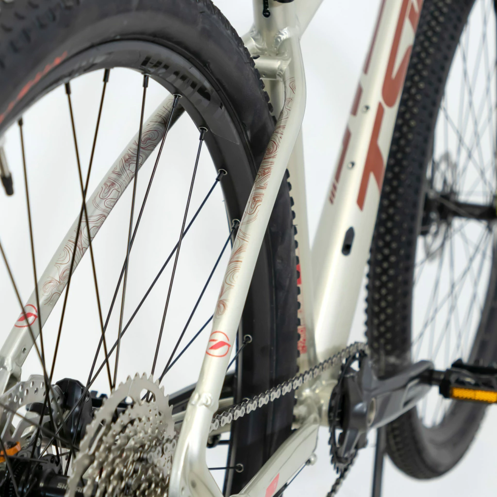 - QUADRO: TSW Jump, Direção Mega Over Ø 44 mm, Canote 31.6 mm, Caixa central BSA 68 mm, Freio a disco Poust Mount, Eixo traseiro 135 mm, Alumínio 6061, Largura máxima de pneu: 29 x 2.2”, Peso Máximo 120 kg