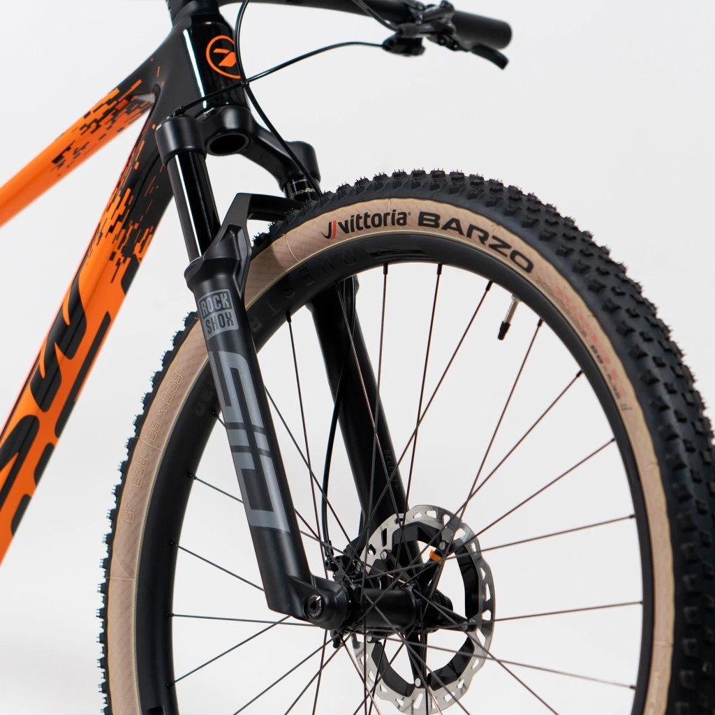 Pneu dianteiro: Vittoria Barzo XC Race - Aro: 29, Largura: 2.35 ", Tipo: c/ tubeless, Composto: 4C Compound, Graphene 2.0, Propriedades: Skinwall