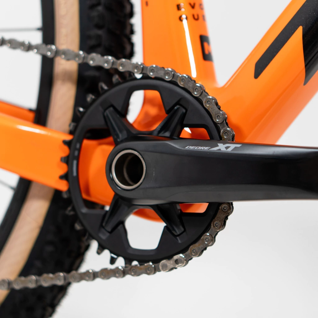 Pedivela: Shimano Deore XT - Material: Alumínio, Eixo pedivela: Hollowtech II, Velocidade (s): 1, Montagem de coroa: Direct Mount, Coroa (s): 34, Padrão DM: Shimano MTB